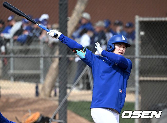 [OSEN=애리조나(미국), 이대선 기자] 18일(한국시간) 미국 애리조나주 글렌데일 캐멀백 랜치에서 2025 메이저리그 LA 다저스의 스프링캠프가 진행됐다.김혜성은 다저스와 최대 3+2년 2200만 달러(약 320억원) 계약에 합의하며 메이저리그 진출에 성공했다.LA 다저스 김혜성이 라이브 배팅을 하고 있다. 2025.02.18 / sunday@osen.co.kr |
