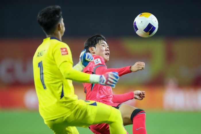 한국은 경기 초반부터 상대를 강하게 몰아 붙였다. 하지만 마무리가 되지 않았다. 오히려 전반 23분 선제 실점했다. 태국은 역습 상황에서 오트사곤 부라파가 단독 드리블 뒤 오른발 슈팅으로 득점했다. 한국은 물러서지 않았다. 전반 32분 코너킥 상황에서 윤도영(대전 하나시티즌)의 골로 동점을 만들었다.