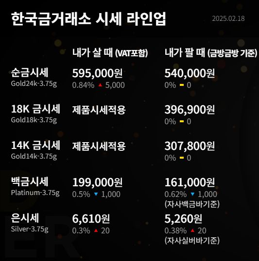 [스타데일리뉴스=서태양기자] 2025년 2월 18일 기준 한국금거래소의 금 시세가 발표되었다.