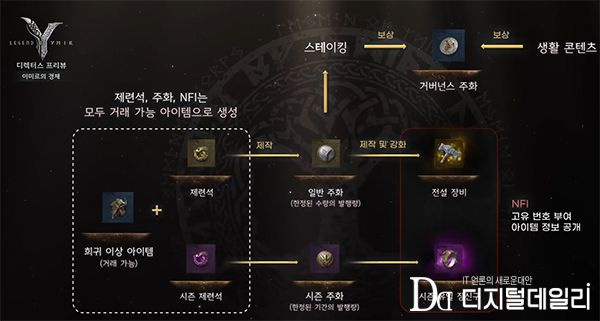 최상위 등급 아이템은 위변조가 불가능한 NFI(Non-Fungible Item)로 제작된다. NFI에는 고유 번호를 부여해 역대 소유주 아이디, 생성 날짜 등 아이템 정보를 모두에게 공개한다. 이용자는 아이템 정보를 블록체인 기반 데이터베이스에서 확인할 수 있다.
