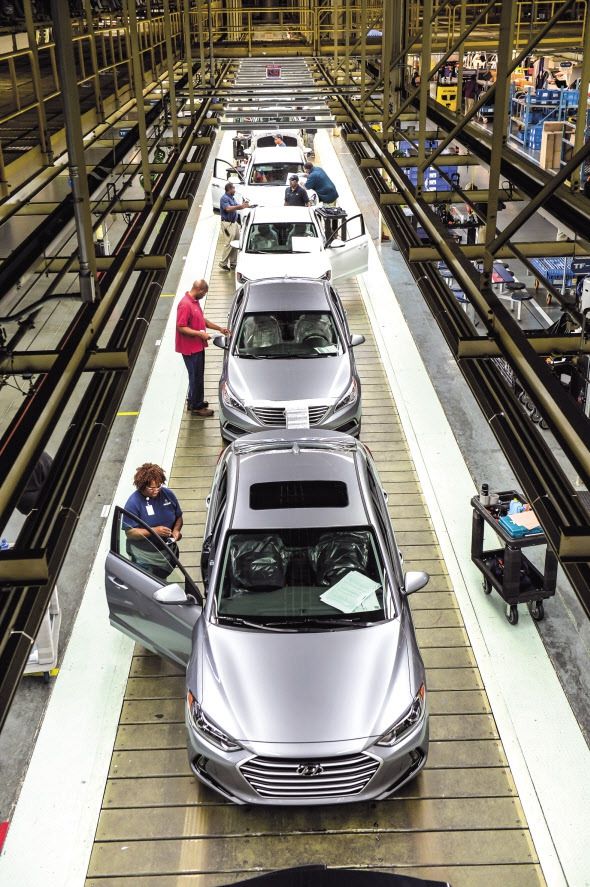 미국이 4월부터 자동차 분야와 관련 상호관세를 넘어 부가가치세와 환경규제 등 ‘비관세 장벽’까지 정조준하며 글로벌 완성차 업계를 압박하고 있다. 사진은 현대자동차 미국공장 생산라인 모습 [현대차 제공] |