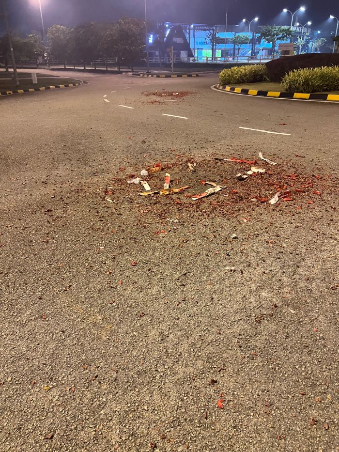 18일 새벽 말레이시아 조호르에 있는 포항 선수단 숙소 앞에서 장장 4시간 동안 폭죽이 터졌다. 조호르팬 무리가 한 방해 공작으로 추정된다. |