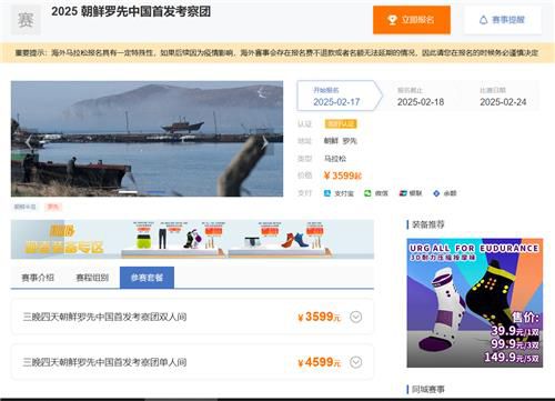 중국 여행사 웹사이트의 북한 라선 관광 모집 화면 |