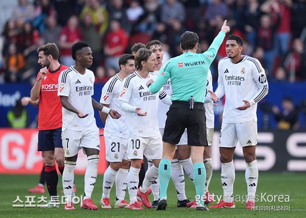 심판 판정에 항의하는 레알 마드리드 선수단 / 사진=Gettyimages 제공 |