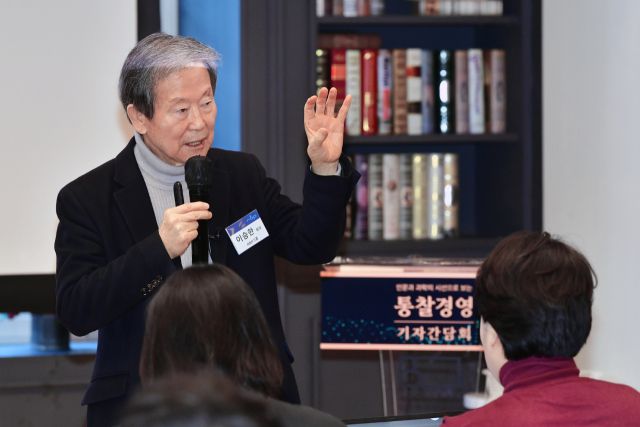 이승한 넥스트앤파트너스(N&P) 경영연구그룹 회장이 18일 서울 강남 북쌔즈에서 열린 ‘인문과 과학으로 보는 통찰경영-K경영이 글로벌 스탠더드가 된다’ 출간 기념 기자간담회에서 “한국이 장기 저성장 국면에 들어가며 기반 기술과 기업가 정신이 쇠퇴하고 있다”며 이같이 말했다.