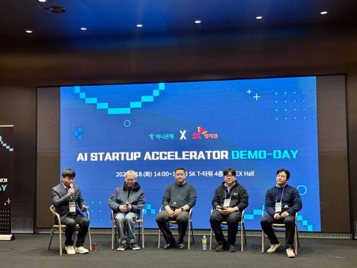 SK텔레콤과 하나은행이 18일 SK T-타워 Supex 홀에서 'AI 스타트업 액셀러레이터 2기 데모데이'(이하 데모데이)를 개최했다. 이날 행사에는 하나은행, SK텔레콤, 2기 선정 기업 관계자 100여명이 참석했다,