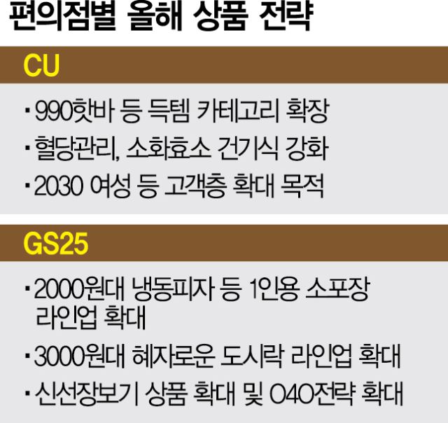 GS25 편의점사업부장을 맡고 있는 정춘호 부사장은 이날 현장에 참석해 “올해는 시장점유율 경쟁보다 점포당 수익성 상승 극대화를 목표로 도시락 등 간편 식품과 신선 식품 강화, O4O 전략 확대에 투자하려고 한다”면서 “출시 예정인 신상품 중에서는 1~2인 가구에 맞는 상품인 도시락과 신선 상품 쪽 먹거리가 큰 호응을 받을 것으로 기대한다”고 말했다. 업계의 다른 관계자도 “기존 경쟁사가 다른 편의점이었다면 이제는 올리브영, 다이소와 고객을 놓고 경쟁해야 한다”며 “편의점들이 각종 뷰티 제품을 판매하고 갓챠(뽑기) 머신까지 선보이는 것도 2030 여성 등 고객층을 더 확대하기 위한 것”이라고 언급했다.