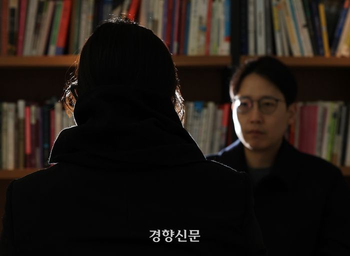 일하는 전공의 A씨(왼쪽)가 12일 서울 중구 정동 경향신문사에서 인터뷰를 하고 있다. 서성일 선임기자 |