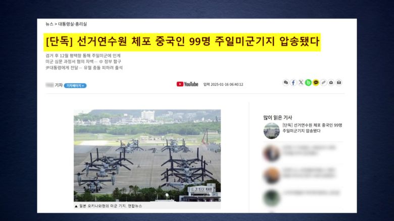 지난달 16일, 한 인터넷 매체가 비상계엄 당시 선관위에 있던 중국인 간첩 99명이 체포됐다는 기사를 냈습니다.