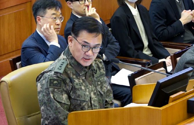 여인형 전 국군방첩사령관이 지난 4일 서울 종로구 헌법재판소에서 열린 윤석열 대통령 탄핵심판 5차 변론기일에 증인으로 출석해 발언하고 있다. (사진=헌법재판소) |