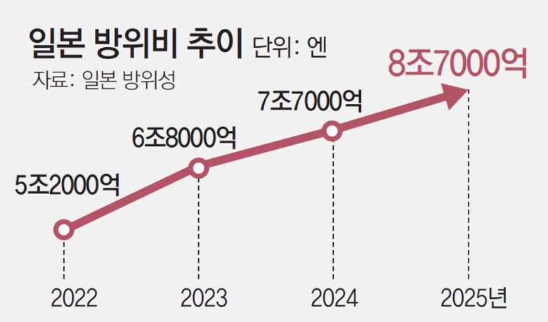 미일 양국은 7일 정상회담 후 발표한 공동성명에서 “미국은 2027년도 이후에도 근본적으로 방위력을 강화해 가겠다는 일본의 약속을 환영한다”고 적시했다. 트럼프 대통령은 당시 공동 기자회견에서 일본 방위비에 대해 “더 늘어날 것”이라며 기대감을 표했다. 일본이 사실상 미국과 방위비 추가 증액을 약속한 것이나 다름없다는 분석이 나온다. 일본은 2022년 개정한 ‘국가 안보 전략’ 등을 통해서도 당시 GDP 대비 1% 수준이던 방위비를 2027년도까지 2%로 늘려 43조 엔(약 409조 원)을 확보하기로 했다.