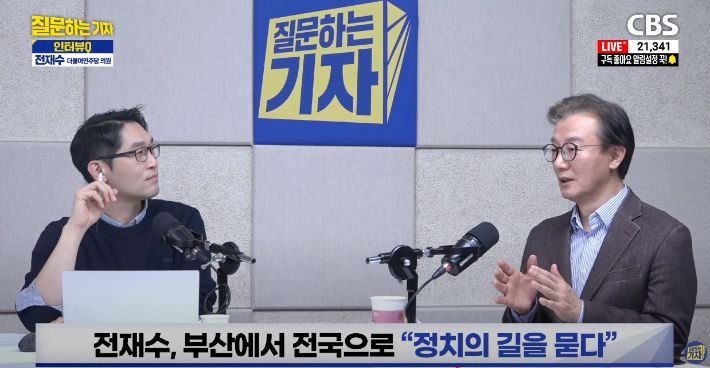 '질문하는 기자' 이정주 기자는 전 의원에게 "지난 총선에서 민주당이 부산에서 거의 전패했지만, 유일하게 살았다"며 과정을 묻자, 그는 "부산 선거는 매번 선거 보름 전까지는 분위기가 좋다가 선거 일주일 전부터 역결집 현상이 나타난다"며 "이번에도 마찬가지였다"고 설명했다.