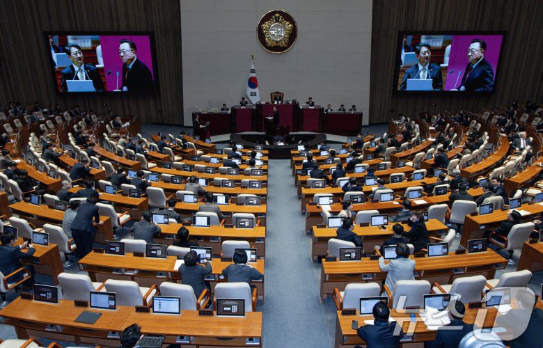 안덕근 산업통상자원부 장관이 지난 13일 오후 서울 여의도 국회 본회의장에서 열린 제422회 국회(임시회) 제5회 본회의에서 고동진 국민의힘 의원의 경제 분야 대정부 질문에 답변하고 있다. /뉴스1 ⓒ News1 이재명 기자