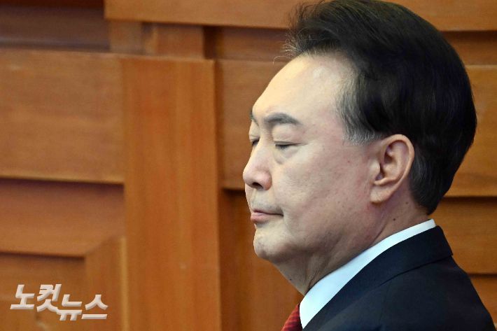 윤석열 대통령이 13일 서울 종로구 헌법재판소에서 열린 윤석열 대통령 탄핵심판 8차 변론에 출석해 변론을 기다리고 있다. 사진공동취재단 |