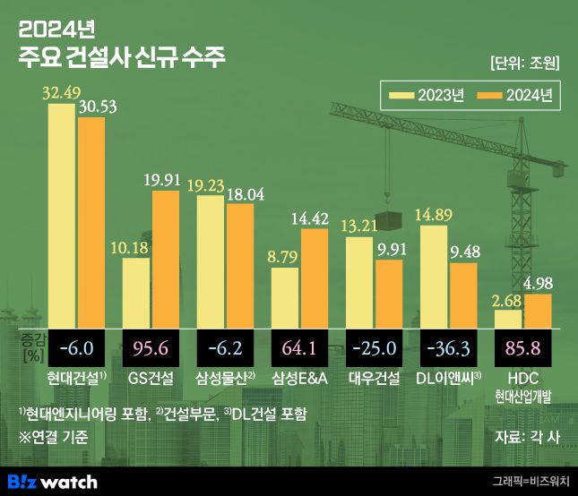2024년 주요 건설사 신규 수주 /그래픽=비즈워치 |