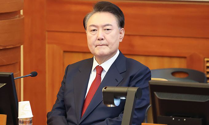 윤석열 대통령이 지난 13일 서울 종로구 헌법재판소 대심판정에서 열린 윤석열 대통령 탄핵심판 8차 변론기일에 출석해 있다. 연합뉴스
