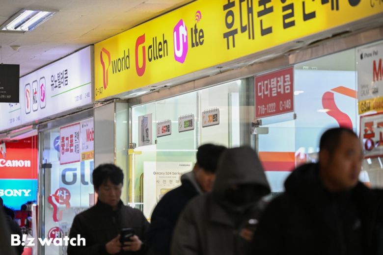 서울 시내 한 휴대전화 대리점 앞으로 사람들이 지나가고 있다./사진=이명근 기자 qwe123@