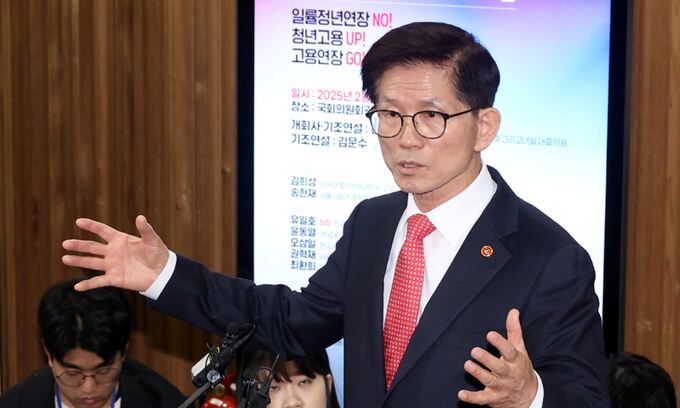 김 장관은 임금체계 개편 없이 정년을 늘릴 시 기업의 부담이 커진다며 “정년연장 논의는 임금체계 개편과 반드시 연동돼야 한다”고 강조했다. 정년연장 시 청년고용이 감소한다는 통계도 제시했다. 그는 “한국노동연구원이 2012년부터 2024년 6월까지 고용보험 통계를 토대로 정년을 60세로 연장한 기업들의 고용변화를 분석한 결과 1000명 이상의 대기업은 정년연장으로 청년고용이 11.6% 감소한 것으로 나타났다”며 “좋은 일자리로 가는 사다리가 끊기면 청년들의 장래는 더 어두워진다”고 설명했다.