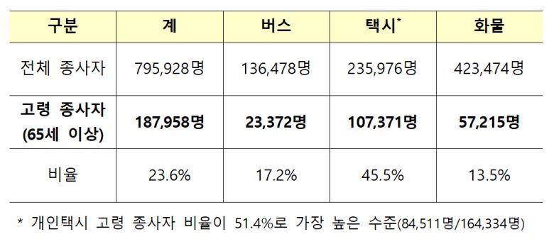 운수 종사자 및 고령 종사자 현황/자료=국토교통부 제공 |