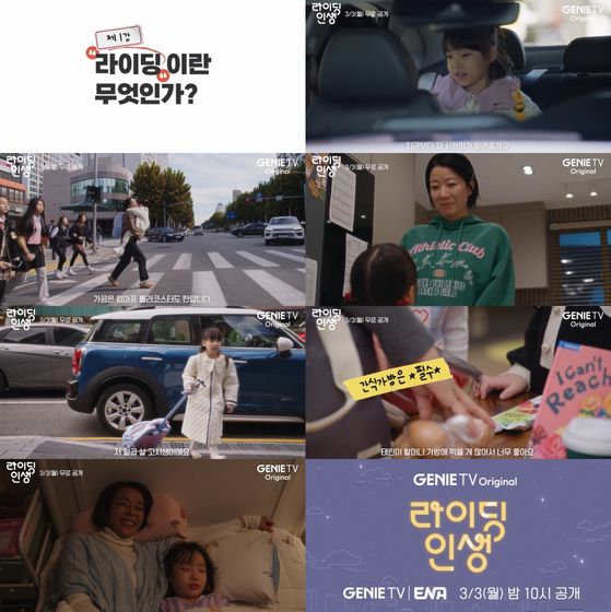 3월 3일 오후 10시에 첫 공개되는 지니 TV 오리지널 드라마 '라이딩 인생'은 딸의 '7세 고시'를 앞둔 열혈 워킹맘 정은이 엄마 지아에게 학원 라이딩을 맡기며 벌어지는 3대 모녀의 애태우는 대치동 라이프를 그린 작품이다. '마더' '악의 꽃' 김철규 감독이 메가폰을 잡았다.