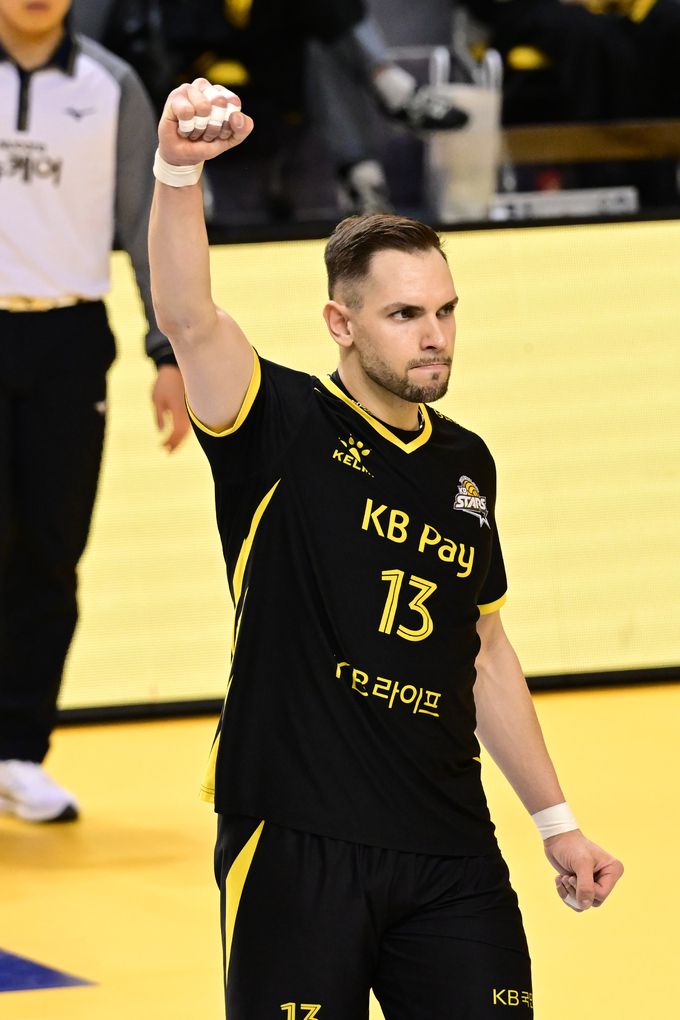 기세를 탄 KB손해보험은 4세트에 우리카드의 막판 추격을 끝내 뿌리쳤다.