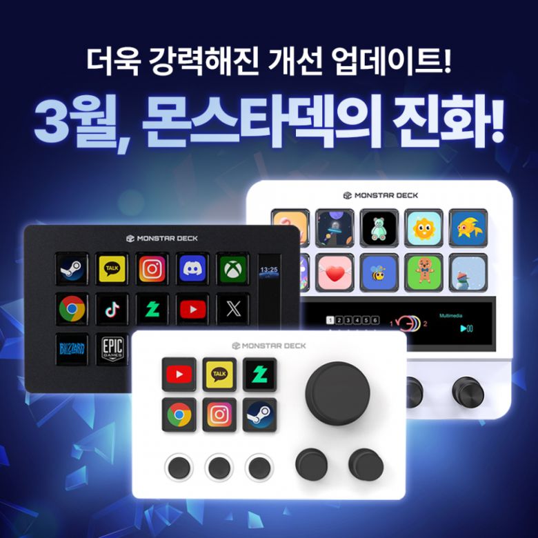 [디지털포스트(PC사랑)=임병선 기자] 커스텀 키보드와 혁신적인 입력기기인 몬스타덱을 통해 시장을 선도하고 있으며, 몬스타기어 브랜드로 게이밍 기어, 커스텀 수랭 쿨러, AI 딥러닝 등 하이엔드 PC 제조에 특화된 기업 몬스타주식회사가 '몬스타덱(MonstaDeck)'의 3월 추가 개선 업데이트를 예고했다. 이번 업데이트에서는 새로운 플러그인이 추가되며, 기존 기능 최적화와 소프트웨어 버그 수정이 포함될 예정이다.