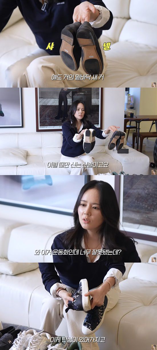 한가인은 브랜드 별로 신발을 정리했다고 밝혔고, 특히 여러 켤레의 샤넬 운동화가 시선을 끌었다. 그는 "샤넬 중에서는 이렇게 낮은 신발만 2시간 이내로 신을 수 있다. 멀리 갈 때는 못 신는다"고 말했다.