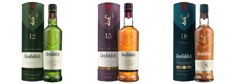 싱글몰트 위스키 글렌피딕 12년(왼쪽부터), 15년, 18년.