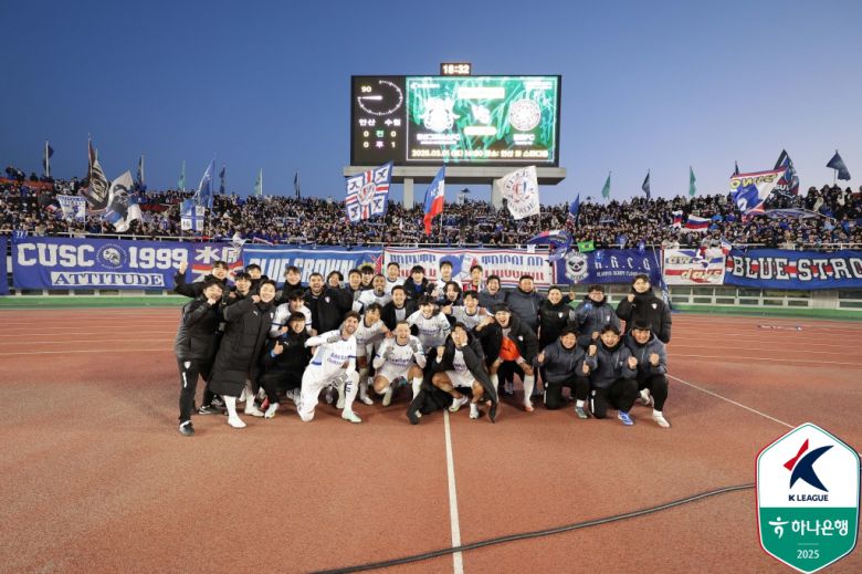 수원은 22일 안산 와~스타디움에서 열린 '하나은행 K리그2 2025' 개막전 안산 그리너스와의 원정 경기에서 후반 21분 김지현의 페널티킥 골에 힘입어 1-0으로 이겼다.