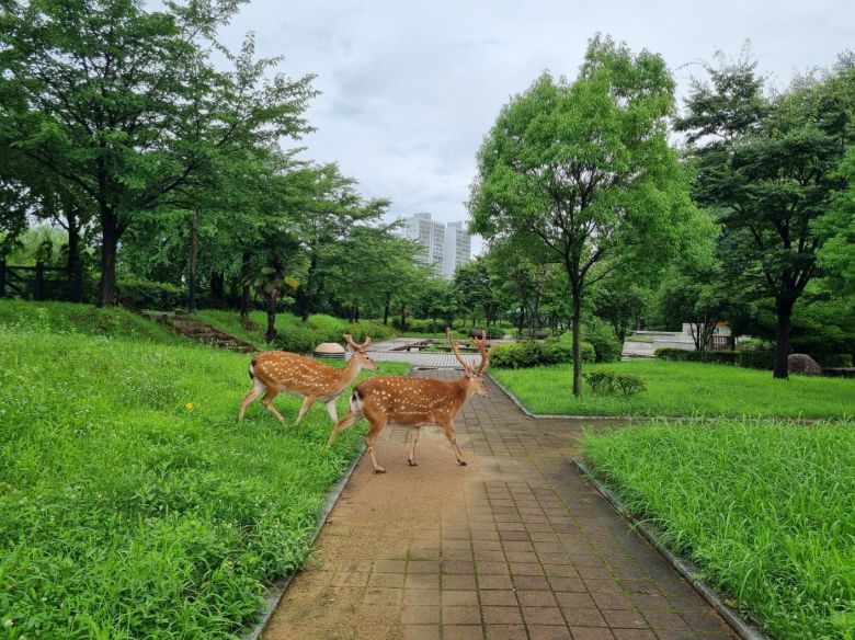 본지 기자가 사슴 약 10m 앞까지 접근했지만 사슴은 멀뚱히 쳐다만 볼 뿐 도망가거나 사람을 경계하지 않았다. 사슴의 배와 엉덩이 쪽에는 흰색 점박이 무늬가 있었고 크기는 1.5m에 달했다. 뿔이 달려있었다면 자칫 위압감이 느껴질 정도였다.