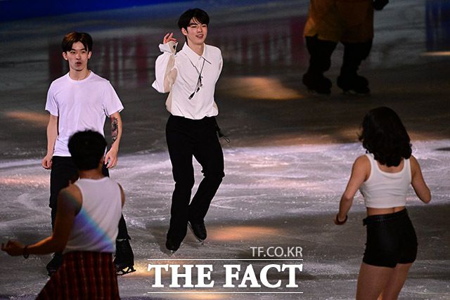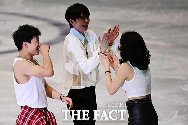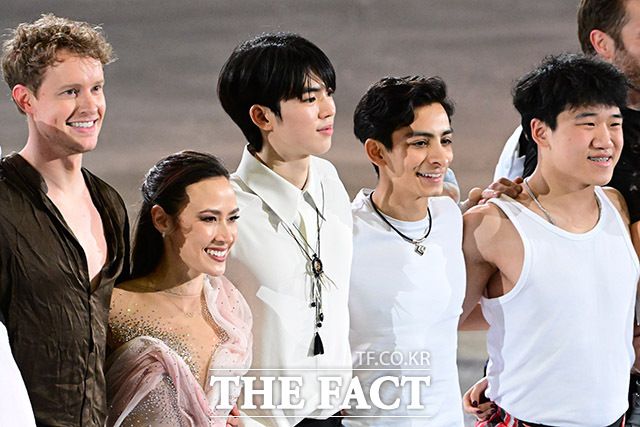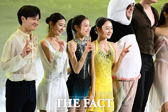 [더팩트ㅣ남윤호 기자] 23일 서울 양천구 목동 아이스링크에서 열린 '2025 ISU(국제빙상연맹) 사대륙 피겨스케이팅 대회'에서 여자 싱글 우승자 김채연과 남자 싱글 은메달리스트 차준환 등 출전 선수들이 갈라쇼를 마치며 기념촬영을 하고 있다.