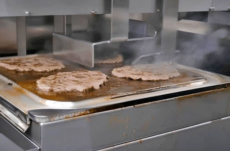 에니아이가 개발한 AI 조리로봇 알파 그릴이 햄버거 패티를 굽는 모습 / 출처=에니아이 |