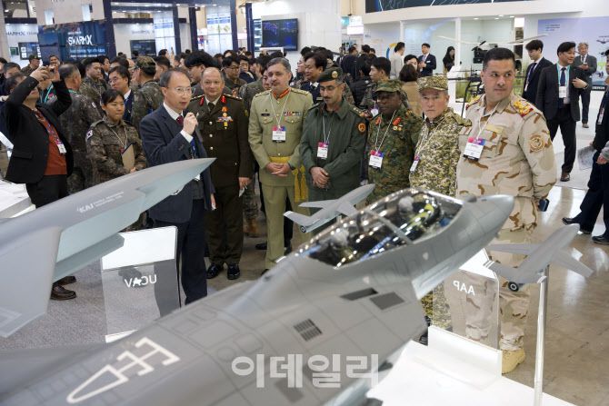 차세대 공중전투체계존에서는 AI 파일럿이 적용될 무인전투기(UCAV)와 다목적무인기(AAP) 등 차세대 무인기 모델을 전시했다. 향후 KF-21과 연계한 유·무인복합전투체계를 선보였다.