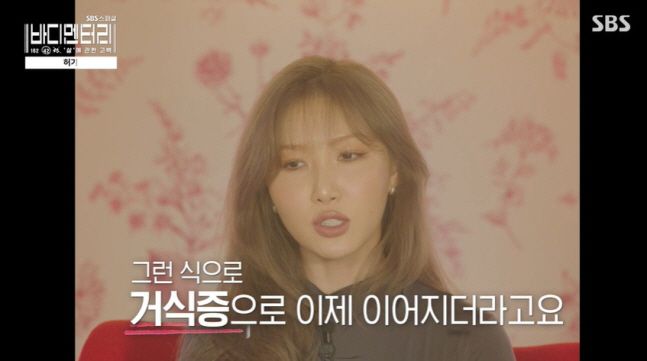 화사는 지난해 12월 SBS '바디멘터리 - '살'에 관한 고백'에서 다이어트 고충을 토로한 바 있다. 화사는 "연습생 시절 체중 재는 날, 멤버들이랑 모여서 약국으로 가서 속 비우는 약을 먹었다. 인절미를 숨어서 먹었을 때 죄책감이랑 분노가 올라왔고 펑펑 울며 토했다. 거식증이 이어졌다"라고 말해 안타까움을 안겼다.