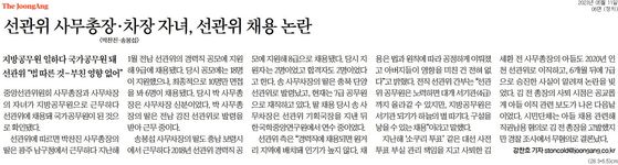 2023년 5월 10일 중앙선거관리위원회 고위직 자제 채용비리 의혹을 처음 보도한 본지 보도. 중앙포토