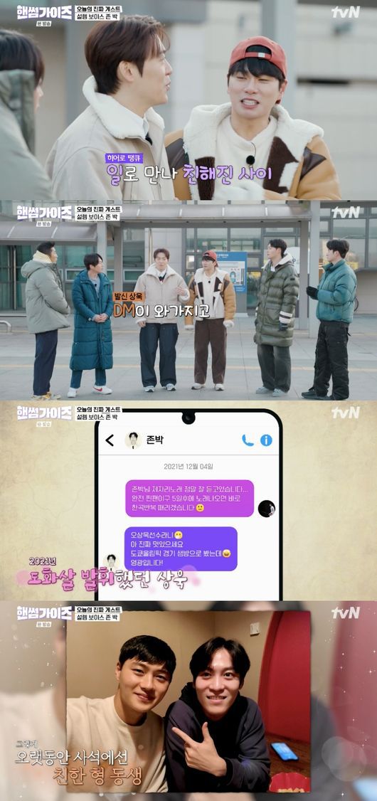 반면 오상욱에 대해서는 “상욱이는 DM이 왔다”라고 설명했다. 모두가 놀라자 오상욱은 “완전 팬이다. 진짜 너무 좋아해서 했다”라며 팬심을 드러냈다. 오상욱은 지난 2021년 존박에게 메시지를 보낸 후 사석에서 만나면서 친한 형, 동생 사이가 됐다고.