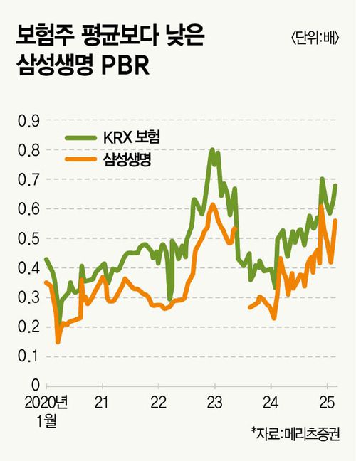 단, 투자 지표상으로는 삼성생명의 투자 매력이 높다는 분석에 무게가 실린다. 미래에셋증권에 따르면 지난해 실적 기준 삼성생명 주가순자산비율(PBR)은 0.55배로, 업계 평균인 0.87배를 밑돈다. 순자산에 비해 주가가 업계 평균보다 낮게 평가받는다는 뜻이다. 올해 예상 실적을 기준으로 봐도 삼성생명 PBR은 0.51배로, 업계 평균(0.81배)보다 낮다. 지난해 주당 배당금(4500원) 기준 배당수익률도 4~5% 정도로 역대 최고 수준이라는 점에서 주가 추가 하락 가능성은 높지 않다는 전망이 나온다. 2월 27일 기준 금융정보 업체 에프앤가이드에 따르면 증권사가 제시한 삼성생명 평균 목표주가는 11만6154원이다. 전일 종가 대비 29%가량 상승 여력이 있다고 내다본 셈이다.