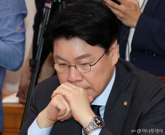 자유한국당 장제원 의원이 25일 오후 서울 여의도 국회에서 열린 법제사법위원회 전체회의에서 생각에 잠겨 있다. |