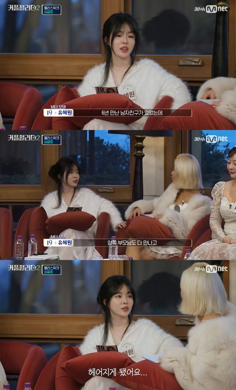 유혜원은 5일 방송된 엠넷 ‘커플팰리스2’에서 “6년 만난 남자친구가 있었는데 헤어지게 됐다”라고 했다.