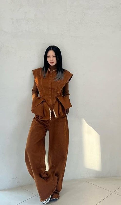 사진 속 한예슬은 브라운 톤의 벨벳 셋업을 입고 포즈를 취했다.