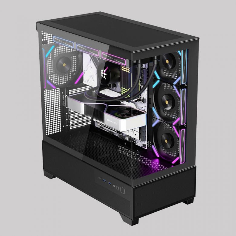 어항 케이스는 전면 패널과 왼쪽 측면 패널이 투명한 강화유리 재질로 구성된 케이스를 말한다. 마치 어항처럼 내부가 훤히 보인다고 해서 붙은 일종의 별칭이다. 내부에 조립한 하드웨어 모습을 보고 싶거나 RGB LED 조명 효과를 다양한 각도에서 느끼고 싶을 때 유용하다. 일부 제조사는 상단 패널에도 강화유리를 적용해 차별화를 노리기도 한다.