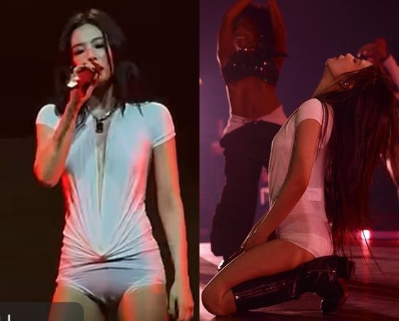 그룹 블랙핑크 멤버 제니(29)가 미국 공연에서 파격적인 의상을 선보여 논란이다.