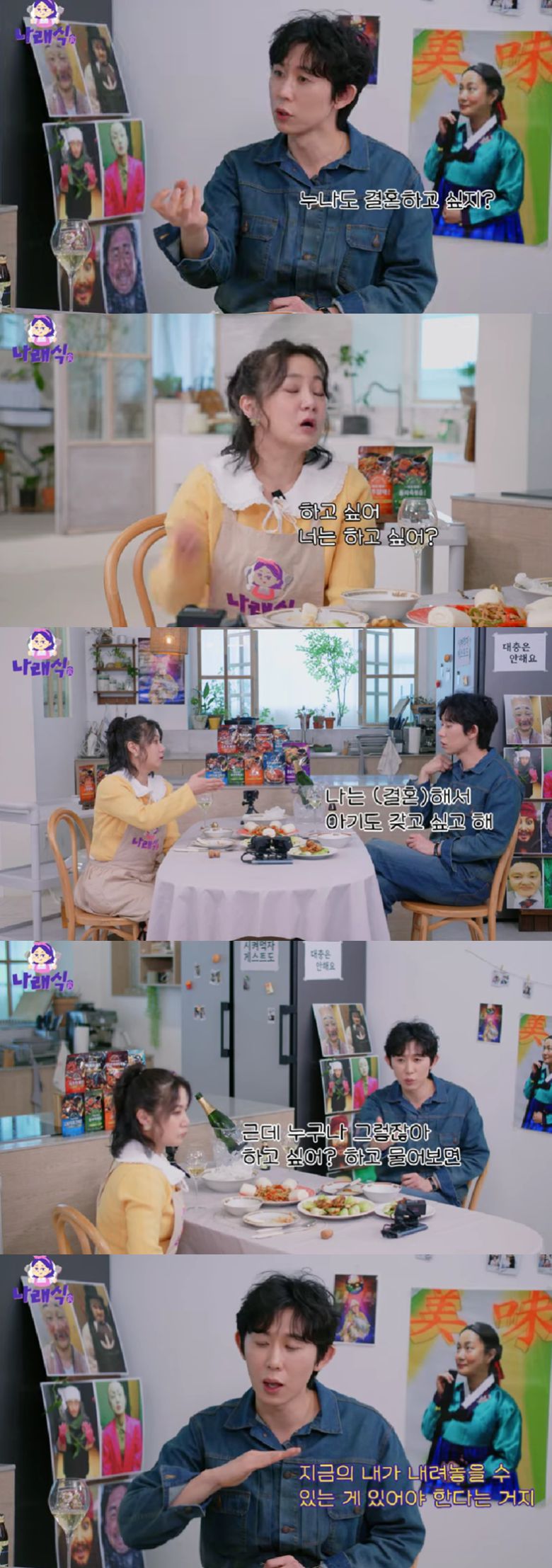 결혼을 하고 싶냐는 질문에 박나래는 "하고 싶다"고 답했고, 코드쿤스트는 "나는 (결혼)해서 아기도 갖고 싶다"며 "근데 누구나 '하고 싶어?'하고 물어보면 '하고 싶어!' 하지만 결혼을 하려면 지금의 내가 내려놓을 수 있는 게 있어야 된다. 근데 우리는 항상 그거를 내년으로 미룬다"라고 말했다.