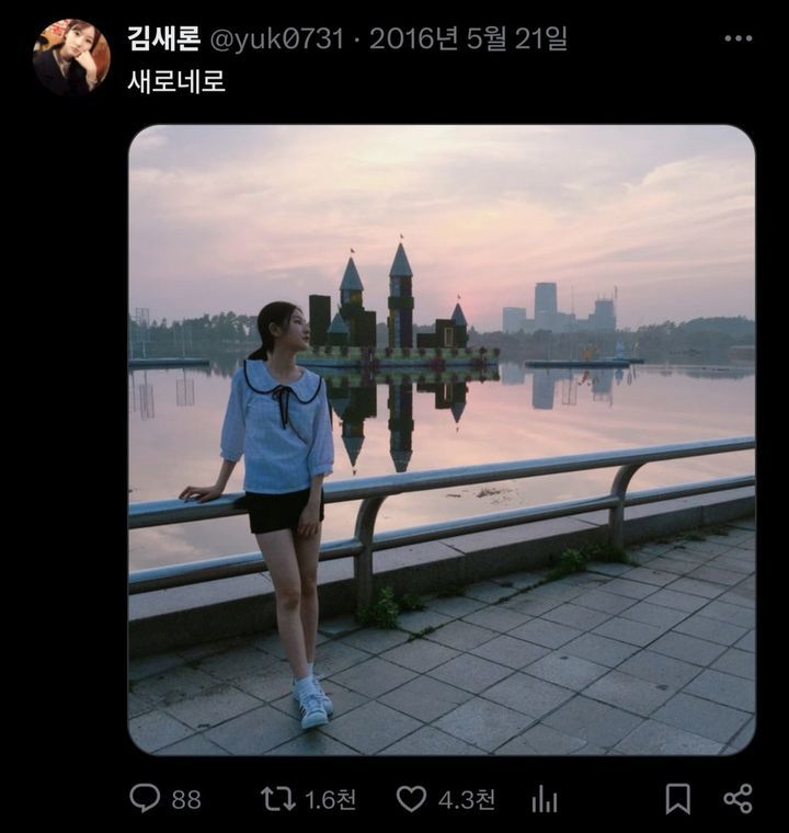김새론은 2016년 5월21일 자신의 엑스(X·구 트위터)에 "새로네로"라고 적고 사진 한 장을 올렸다. 사진 속 김새론은 노을이 진 풍경을 배경으로 포즈를 취했다.