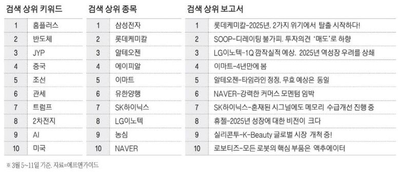 홈플러스의 뒤를 이어 지난 일주일간 에프앤가이드 키워드 검색어 2위와 3위에 오른 종목은 반도체(293회)와 JYP(255회)였다.