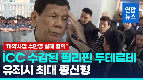 (서울=연합뉴스) '마약과의 전쟁' 명분으로 반인도적 살상 범죄를 저지른 혐의를 받는 로드리고 두테르테 전 필리핀 대통령(2016∼2022년 재임)이 12일(현지시간) 국제형사재판소(ICC)에 수감됐습니다.