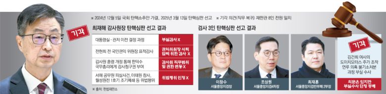 최재해 감사원장과 검사 3인 탄핵심판 선고. |