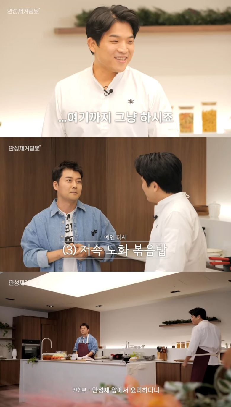 이에 안성재는 촬영 시간이 길어질 것을 걱정했으나, 전현무는 15분이면 끝난다고 자신했다. 요리 시작에 앞서 전현무는 "안성재 앞에서 요리를 하다니 미친 거 아니야? 요리라고 하기에는 좀 민망합니다"라고 소감을 전했다.