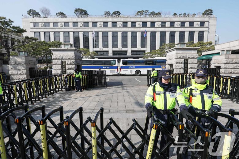 서울 종로구 헌법재판소 출입로가 엄격히 통제되고 있다. 2025.3.11/뉴스1 ⓒ News1 민경석 기자 |