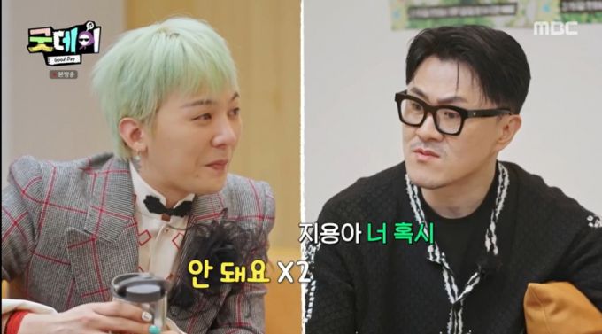 데프콘이 지디의 아이템을 탐내고 있다. /사진=MBC '굿데이' 캡처 |